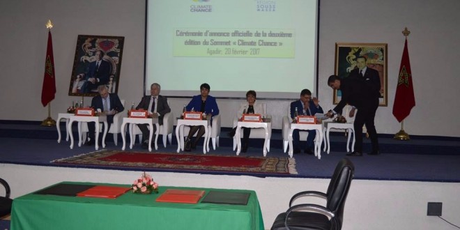 وقد تم بهذه المناسبة التوقيع على اتفاقية شراكة بين مجلس جهة سوس ماسة في شخص رئيسها السيد إبراهيم حافيدي وجمعية climate chance في شخص رئيسها السيد Ronan DANTEC وذلك بحضور السيدة حكيمة الحيطي ، الوزيرة المنتدبة المكلفة بالبيئة والسيدة زينب العدوي ، والي جهة سوس ماسة والسيد الحسن بيجديكن ، رئيس مجلس عمالة أكادير إداوتنان والسيد محمد باكيري ، نائب رئيس المجلس الجماعي لأكادير والسيد كريم أشنكلي ، رئيس غرفة التجارة والصناعة والخدمات وعدد من الفعاليات السياسية والإقتصادية بالمدينة .