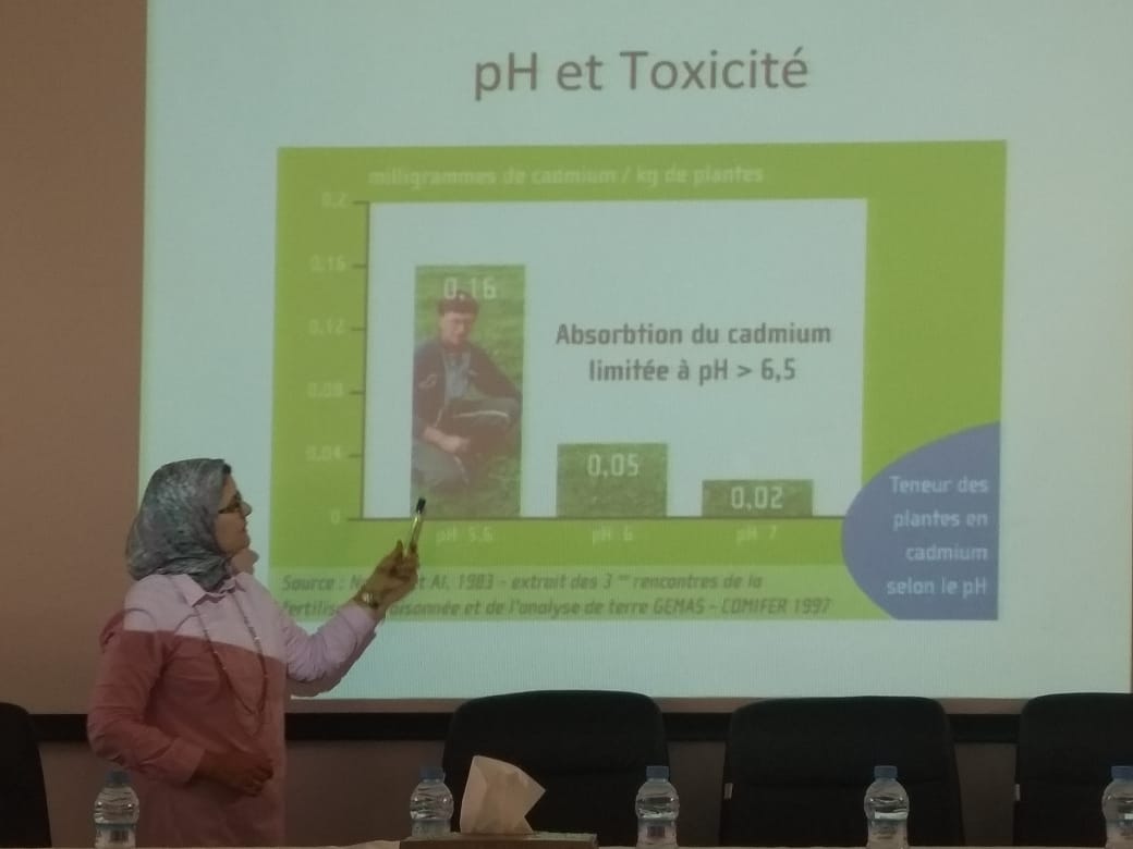 حيث تطرقت في معرضها عرضها إلى أساسيات التسميد الزراعي ودوره في تجويد سلسلة الإنتاج كعنصر رئيسي لا محيد عنه من أجل الحصول على المردودية والجودة المطلوبة , لكن ذلك لن يتحقق إلا بالإحاطة علما والإلمام الشامل بقواعد التسميد وموعد التدخل من أجل معالجة بعض الأمراض او الاعراض الجانبية التي من الممكن أن تظهر جراء الإستعمال غير المعقلن الأسمدة أو عدم فهم حاجيات النبتة.