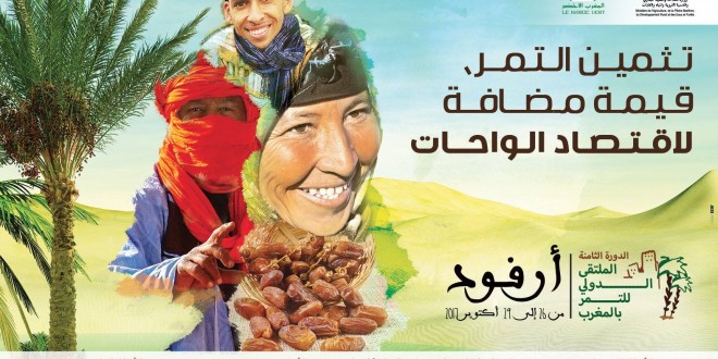 الدورة الثامنة للمعرض الدولي للتمور بمدينة أرفود، تحت شعار “تثمين إنتاج التمر، قيمة مضافة لاقتصاد الواحات“، بمشاركة 250 عارض من حوالي 15 دولة.