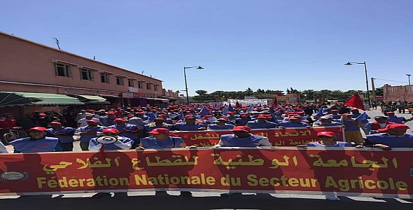 عقد المكتب النقابي للمكتب الجهوي للأستتمار الفلاحي لسوس ماسة التابع للجامعة الوطنية للقطاع الفلاحي المنضوية تحت لواء الإتحاد المغربي للشغل، يوم الخميس 21 دجنبر 2017 بمقر الإتحاد المغربي للشغل اجتماعه العادي وبعد استعراض الاوضاع العامة على المستوى الوطني وما وصلت اليه من تعطيل التنمية ومن تدهور اجتماعي كبيرل عموم الفئات الشعبية وعلى راسها الطبقة العاملة في ظل ارتفاع تكاليف المعيشة مع تجميد تام للأجور.