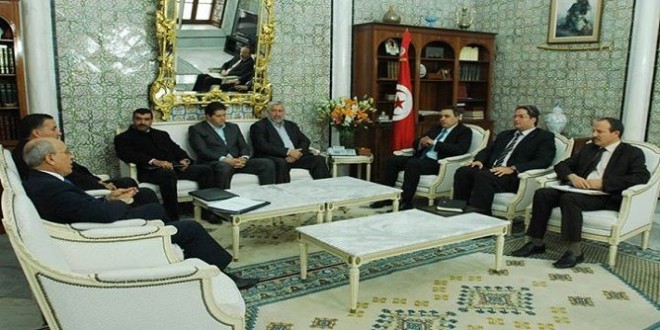 تحادث رئيس الحكومة مهدي جمعة صباح يوم الجمعة بقصر الحكومة بالقصبة مع وفد من الاتحاد التونسي للفلاحة والصيد البحري برئاسة عبد المجيد الزار رئيس المنظمة الفلاحية وذلك بحضور الوزير لدى رئيس الحكومة المكلف بالتنسيق ومتابعة الشؤون الاقتصادية نضال الورفلي.