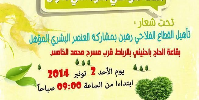 ستعرف قاعة باحنيني بالرباط انعقاد أول لقاء وطني من نوعه لخريجي المعاهد الفلاحية، يوم الأحد 02 نونبر 2014 القادم، شعار : ” تأهيل القطاع الفلاحي رهين بمشاركة العنصر البشري المؤهل ” للوقوف على الإكراهات التحديات والمشاكل التي يعرفها خريجو المعاهد الفلاحية.